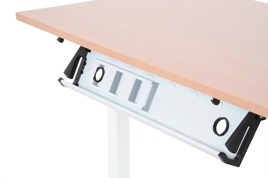 Horizontal cable channel mounted under the countertop, tiltable, white colour